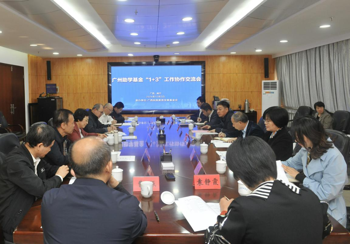 12月3日,广州助学基金“1+3”工作协作交流会在南宁召开。广西壮族自治区教育厅党组成员、副厅长胡春柳出席会议并致辞。“1+3”成员单位广州市教育基金会、四川省教育基金会、广西民族教育发展基金会、西藏自治区学生资助管理中心主要负责人及相关人员、爱心企业代表等21人参加会议。本次会议由广西民族教育发展基金会轮值主办。