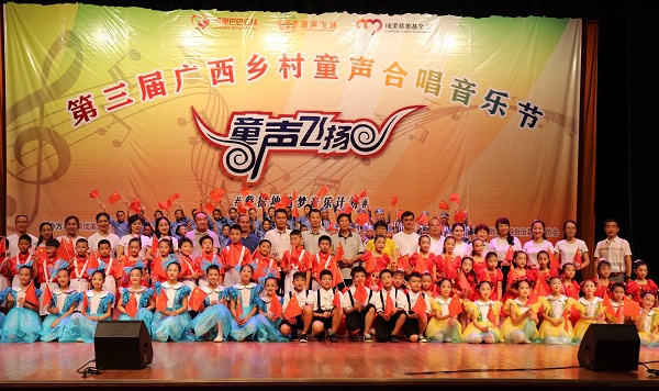 近日,蔡徐坤追梦音乐计划暨第三届广西融水“童声飞扬”乡村童声合唱音乐节在融水苗族自治县民族会务中心成功举办。来自融水县4所乡村学校近350名孩子共同放声歌唱童年梦想,献礼祖国70周年华诞。海南成美慈善基金会、广西民族教育发展基金会、融水县政府各部门及媒体代表们出席本届音乐节。