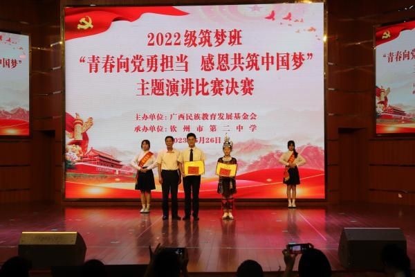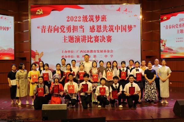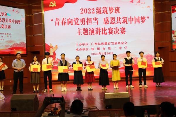 为让同学们常怀感恩之心,不负殷殷重托。做最好的自己,努力拼搏,向梦想前行,广西民族教育发展基金会于2023年5月26-28日在钦州市举行2022级“筑梦班”学生“青春向党勇担当 感恩共筑中国梦”主题演讲比赛决赛暨“求真进取 筑梦远航”钦州港课外实践主题研学活动。本次活动由广西民族教育发展基金会主办,由钦州市第二中学承办,全区各地8所自治区示范性高中2022级“筑梦班”师生共60人参加。