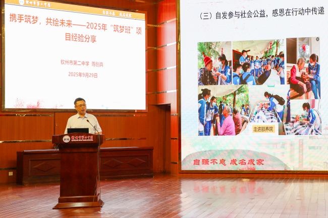 今年秋季,基金会在全区再设10个“筑梦班”,项目覆盖柳州、桂林、钦州、玉林、贵港、河池、来宾等七市10所示范性高中。在签约仪式上,基金会、容县高中和教育科学出版社广西服务中心的有关负责人,分别代表2025年项目合作方作了表态讲话。随后,陈标智副理事长代表基金会与钦州市第二中学等10所项目学校依次签署了2025级“筑梦班”合作协议。