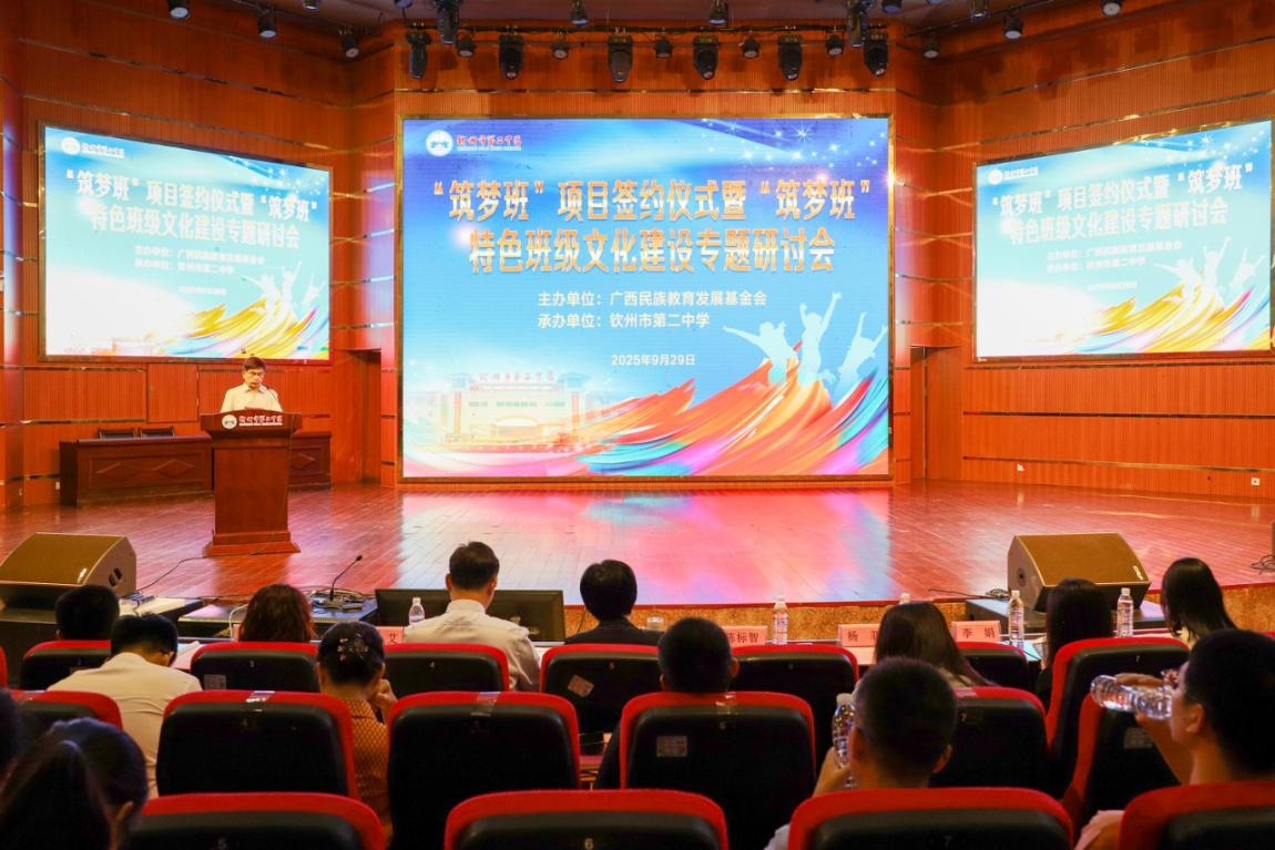 近日,广西民族教育发展基金会在钦州市顺利举办2025年“筑梦班”项目签约仪式暨“筑梦班”特色班级文化建设专题研讨会。基金会副理事长陈标智、副理事长兼秘书长李桂良,和来自全区项目学校的校领导、“筑梦班”班主任以及相关爱心企业代表等齐聚一堂,共同见证新一届“筑梦班”的签约启动,并就特色班级文化建设展开深入交流。
