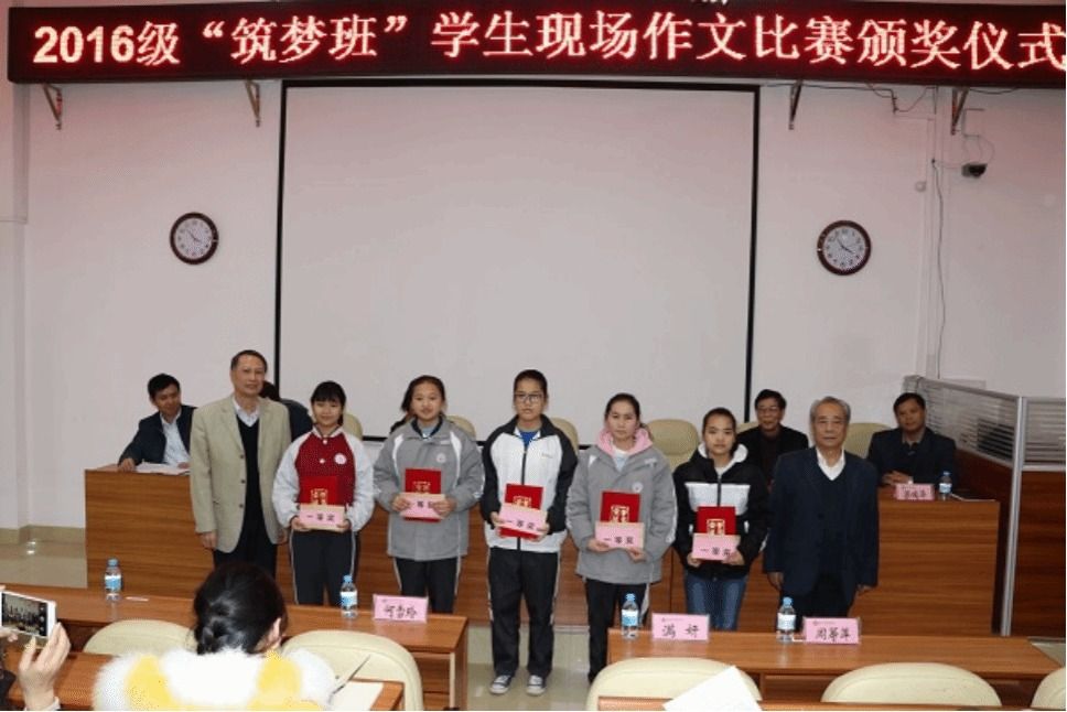 2018年1月5日,由广西民族教育发展基金会主办的2016级“筑梦班”现场作文比赛在百色市祈福高中举行,来自河池高级中学、百色祈福高中、柳州地区民族高级中学、贺州第二高级中学、广西民族师范学院附属中学、融水苗族自治县中学、龙胜各族自治县中学、忻城县高级中学等39名“筑梦班”学生通过选拔晋级参加现场作文比赛决赛。