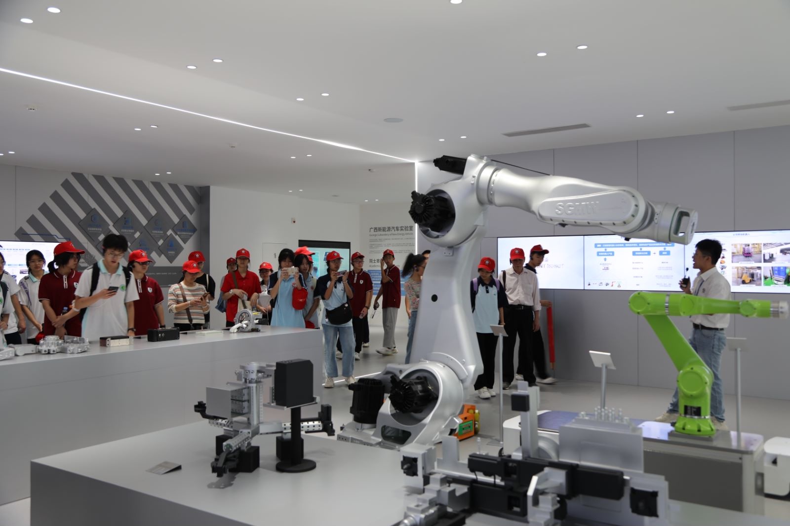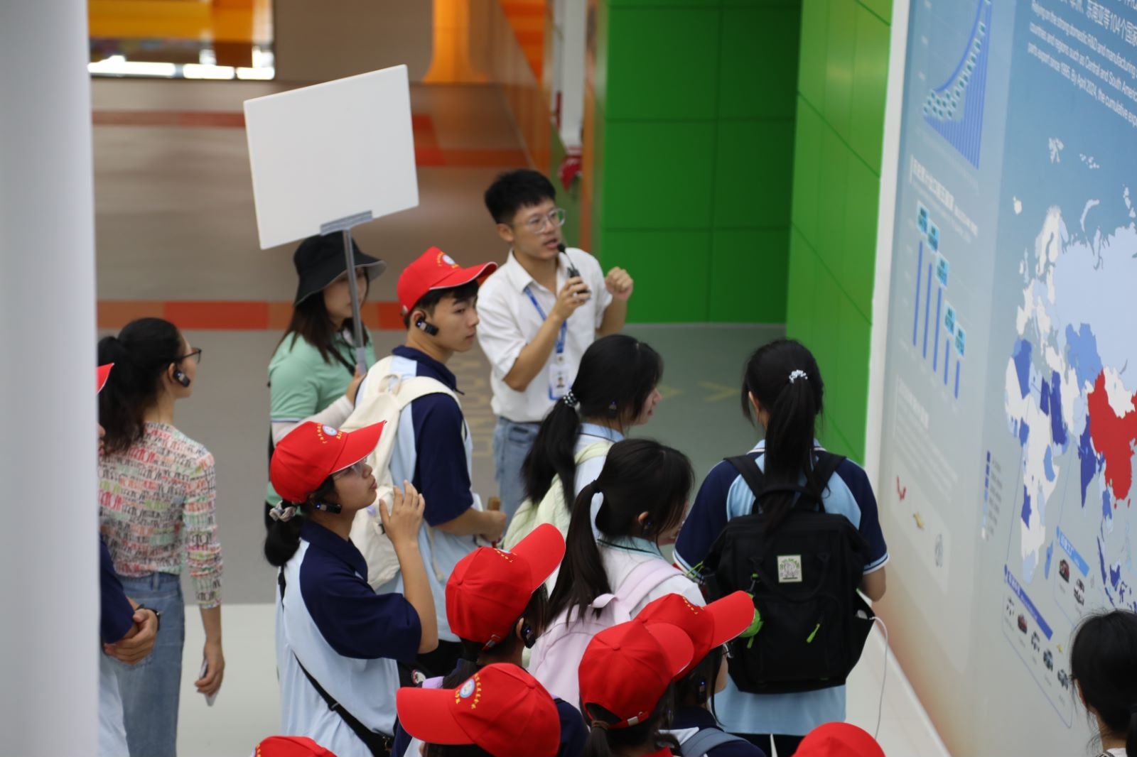 在研学导师的带领下,师生们首先参观了柳州科技馆。通过多个展厅和互动体验区,他们深入了解了智能制造、新能源技术、人工智能等领域的最新发展,感受到了科技的力量和魅力。