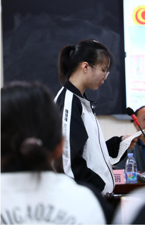 韩艳梅同学作为“筑梦班”代表进行发言,为大家介绍了同学们在“筑梦班”学习、生活的基本情况,倾诉了高三最后冲刺阶段的迷惘,表达了战胜困难的信心和勇气,以及为高考和未来努力奋斗的决心。
