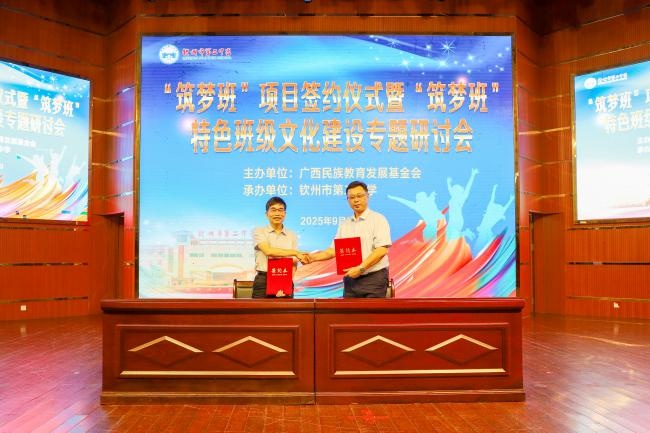 近日,广西民族教育发展基金会在钦州市顺利举办2025年“筑梦班”项目签约仪式暨“筑梦班”特色班级文化建设专题研讨会。基金会副理事长陈标智、副理事长兼秘书长李桂良,和来自全区项目学校的校领导、“筑梦班”班主任以及相关爱心企业代表等齐聚一堂,共同见证新一届“筑梦班”的签约启动,并就特色班级文化建设展开深入交流。
