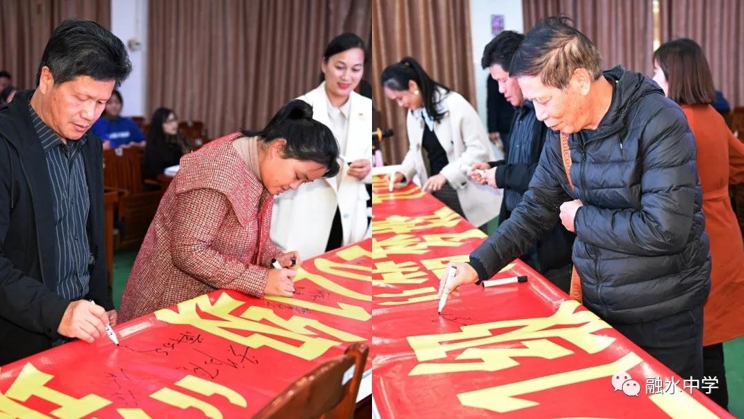 参会领导及2021级筑梦班全体师生在纪念条幅上签名