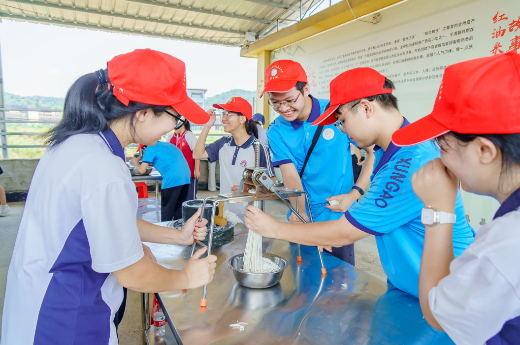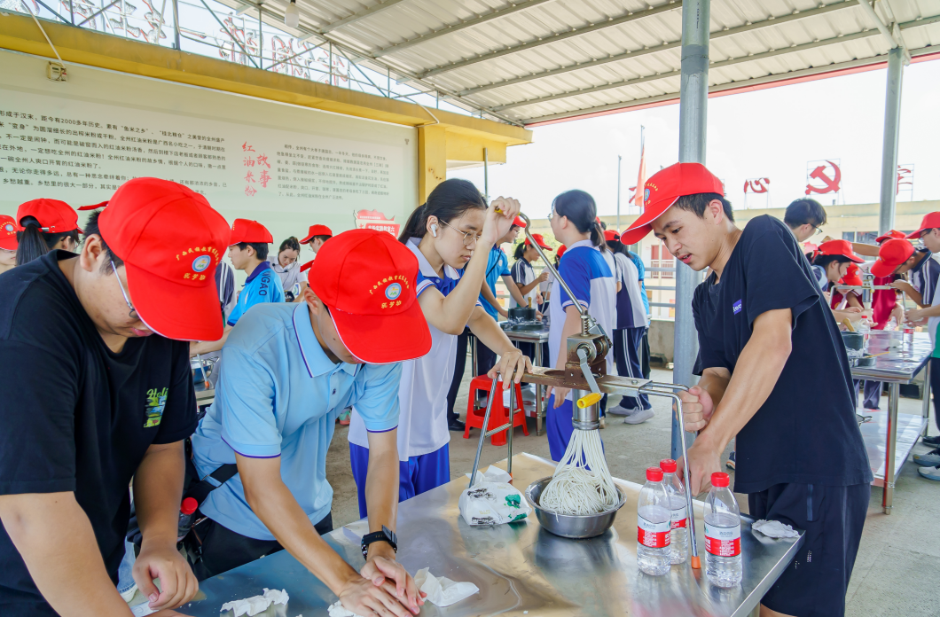 随后,“筑梦班”师生来到米粉博物馆参观与学习,在这里,不仅了解了全州米粉的历史文化、生产工艺等,还在研学导师的指导下,亲手体验米粉制作,参与米粉制作比赛,现场气氛热烈,欢声笑语不断。