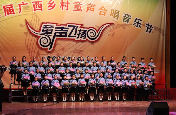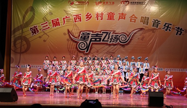 “童声飞扬”项目是2013年由成美慈善基金会发起的乡村音乐教育项目。目的是为了平衡乡村教育资源,让每一个乡村孩子都能平等的享受到正规的音乐教育。2015年,广西民族教育发展基金会将项目引进广西并落户融水,由融水县教育局特任融水县学生资助管理中心作为项目的实施机构,负责组织和管理好项目的运行,并协调志愿者定期走进乡村小学,帮助学校以组建合唱团的形式开展音乐支教工作,让农村音乐教育滞后地区的孩子们有机会接触正规的音乐艺术,帮助他们获得更多的快乐、健康、自信。2015年至2019年,融水“童声飞扬”项目已完成第一期工作,2019年下半年开始,海南成美慈善基金会将继续支持融水县开展第二期“童声飞扬”项目活动。
